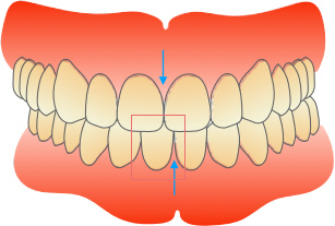 ![]() 口呼吸などでお口がポカンと空いて唇の力が弱かったり、舌の突出癖があると、前歯は前突します |
